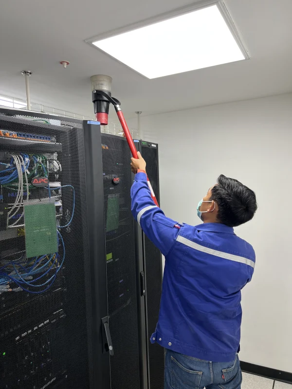 ตรวจสอบทดสอบระบบดับเพลิงอัตโนมัติในศูนย์คอมพิวเตอร์